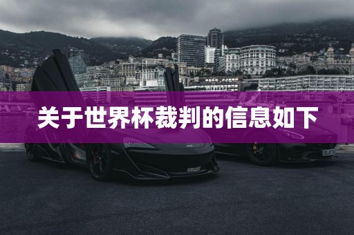 信息仅供参考,如需了解更多关于世界杯裁判的最新信息,请查阅FIFA官网或者相关新闻报道。