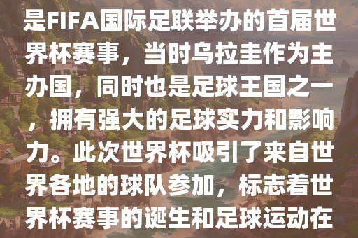 1930年乌拉圭世界杯是足球历史上的一次重要事件,标志着世界杯赛事的诞生和足球运动在全球范围内的普及和发展。