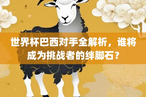 本文摘要:本文将全面解析世界杯上巴西队的对手,探讨各队的实力与特点,分析谁将成为巴西挑战者的绊脚石。文章将重点关注各队的战术风格、核心球员以及历史表现等方面,旨在为球迷和观众提供有关世界杯赛事的深入了解和预测。