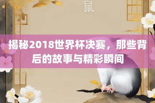 摘要:本文将带你深入了解2018年世界杯决赛背后的故事与精彩瞬间。从球员们的备战历程,到比赛过程中的紧张刺激,本文将揭示那些鲜为人知的故事和令人难忘的时刻。跟随本文,一起回顾那场激动人心的决赛,感受足球的魅力。